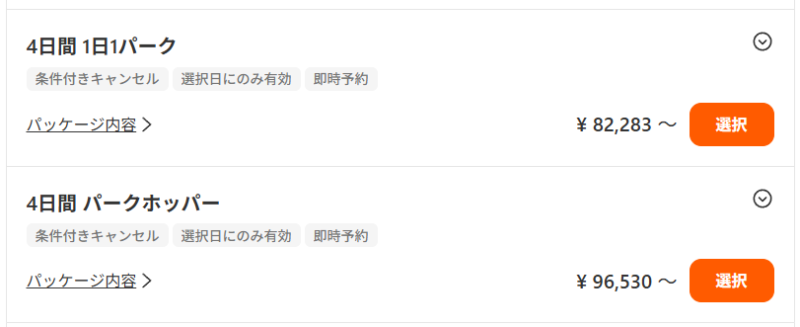 チケットは「1日1パーク」と「パークホッパー(パーク間移動可能)」がありました!